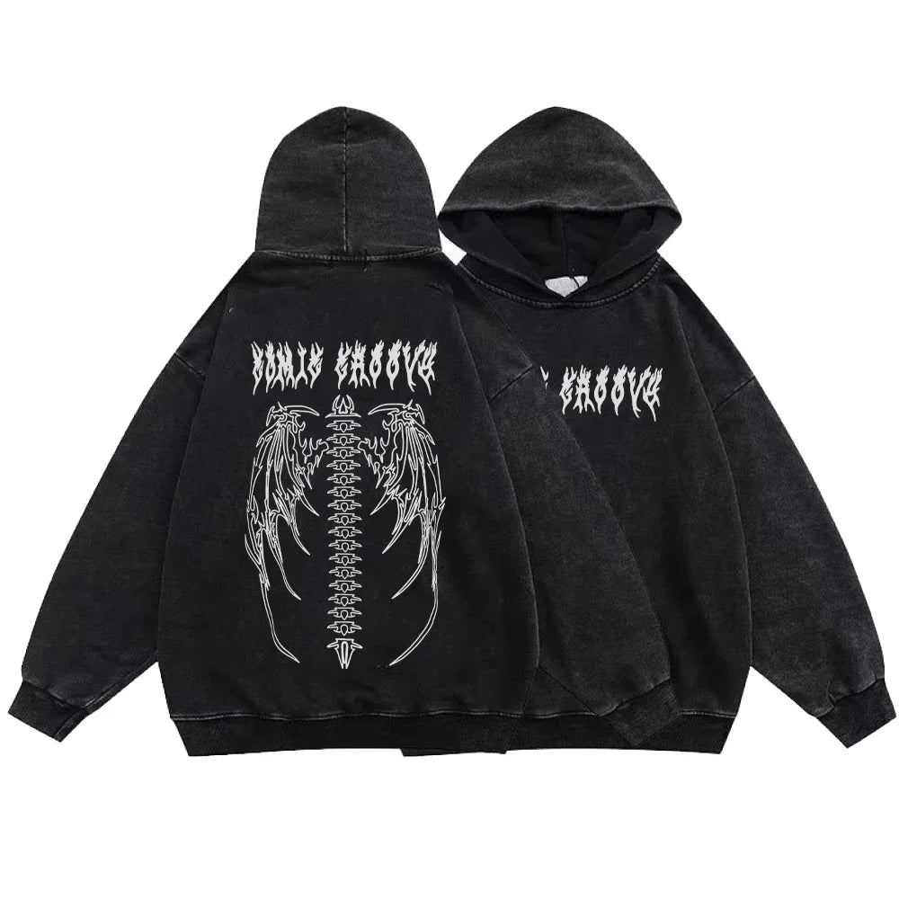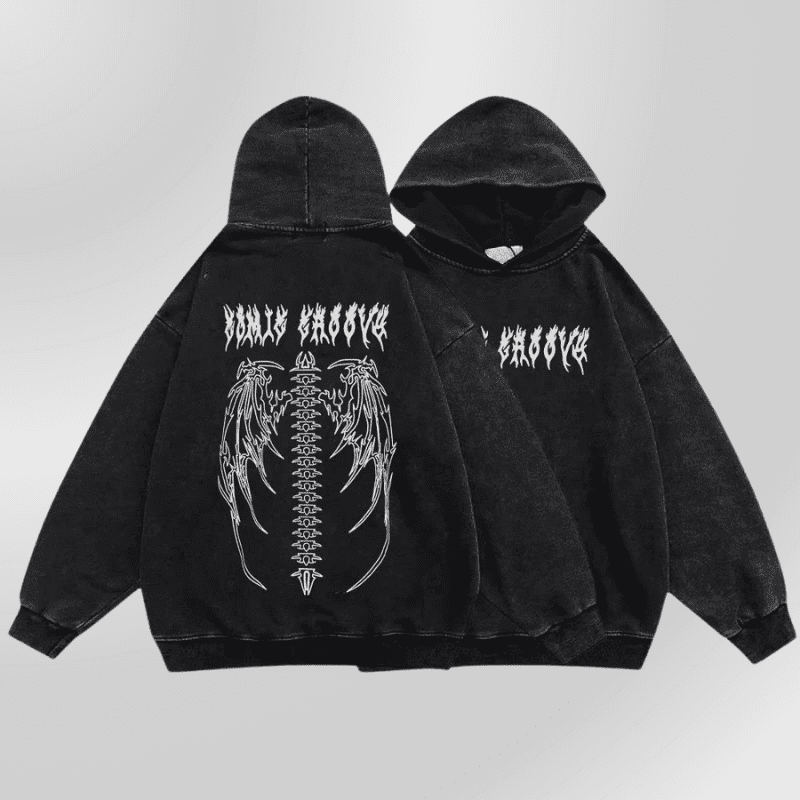 オルタナティブ グランジ系ブラックパーカー「ボーンズ」