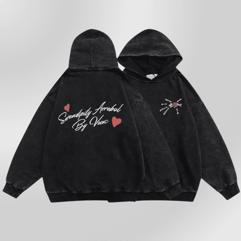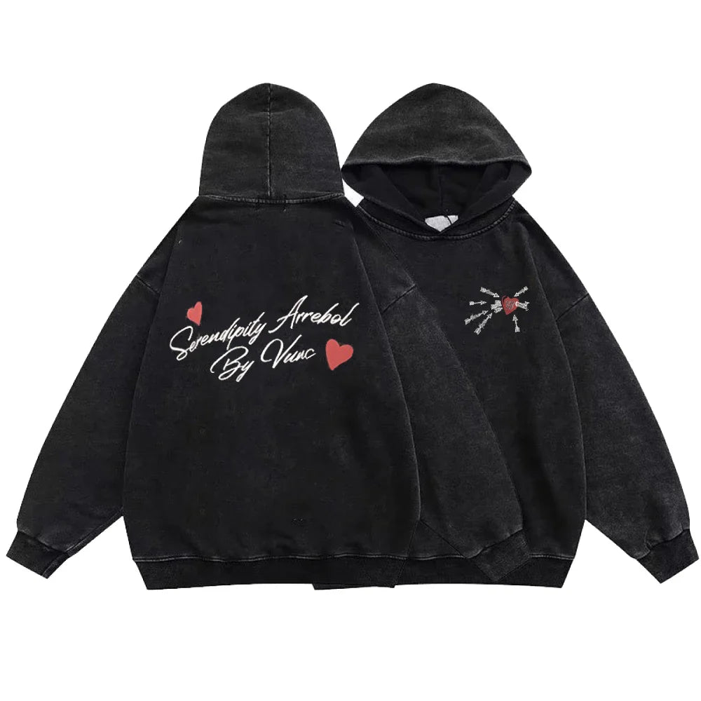 オルタナ系ブラックグランジパーカー フード付き – ハート