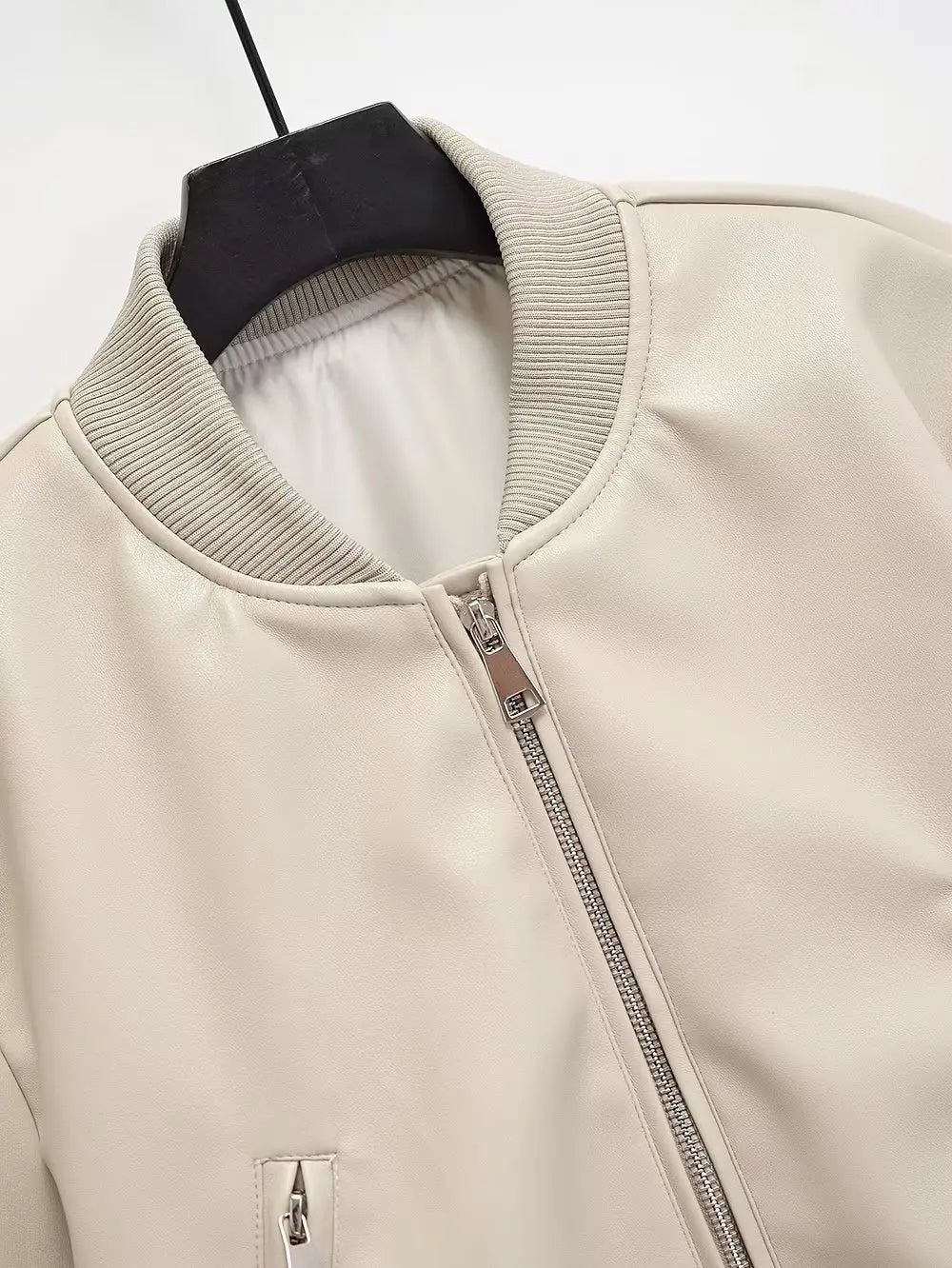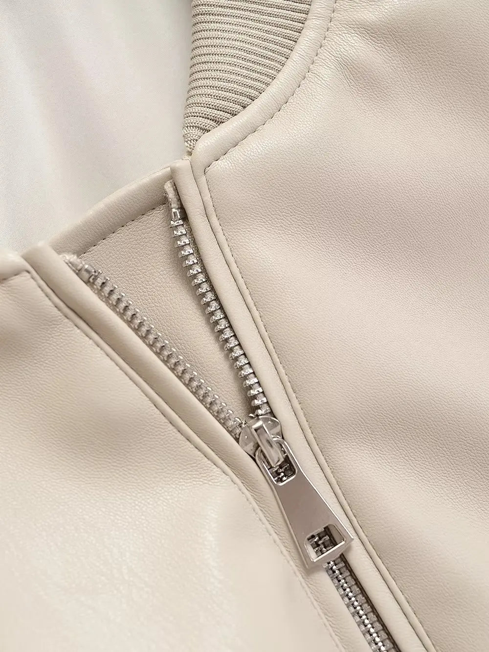 ベージュ パンクロック ボンバージャケット ジッパー付き・リブ袖口