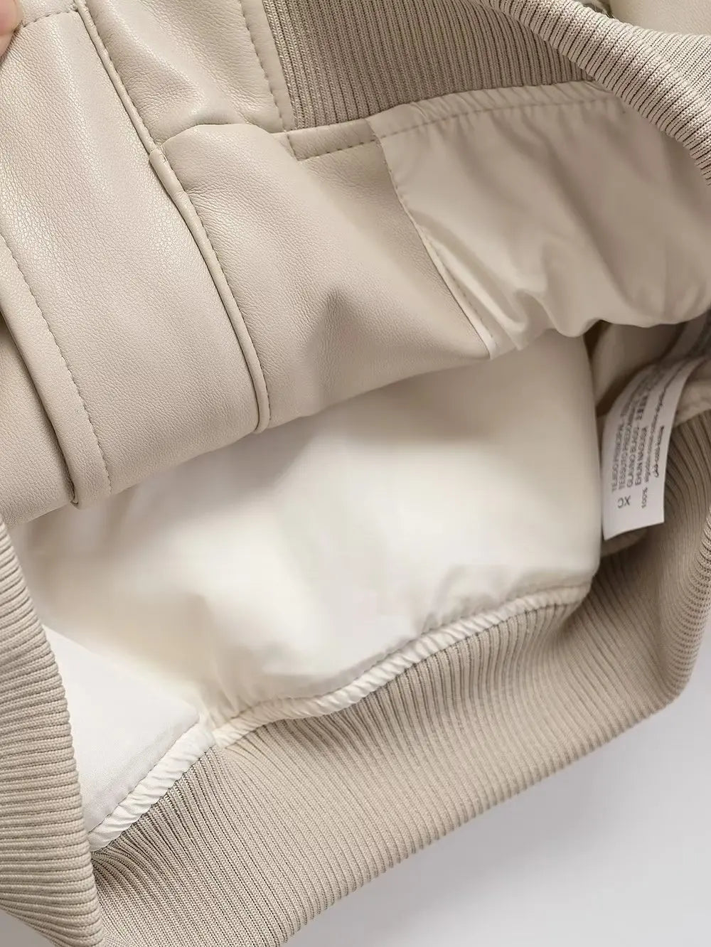 ベージュ パンクロック ボンバージャケット ファスナー付き・リブ袖口