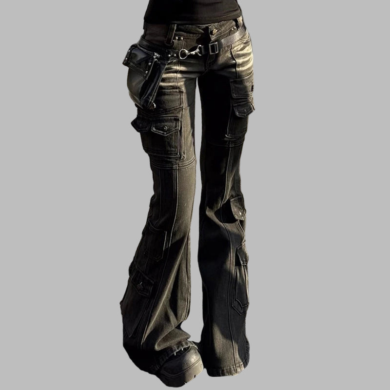 黒ゴシックカーゴパンツ ワイドシルエット ポケット付き オプションを見る