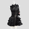 レディース黒ゴシックワンピース ストライプ ファスナー フリル オプションを見る