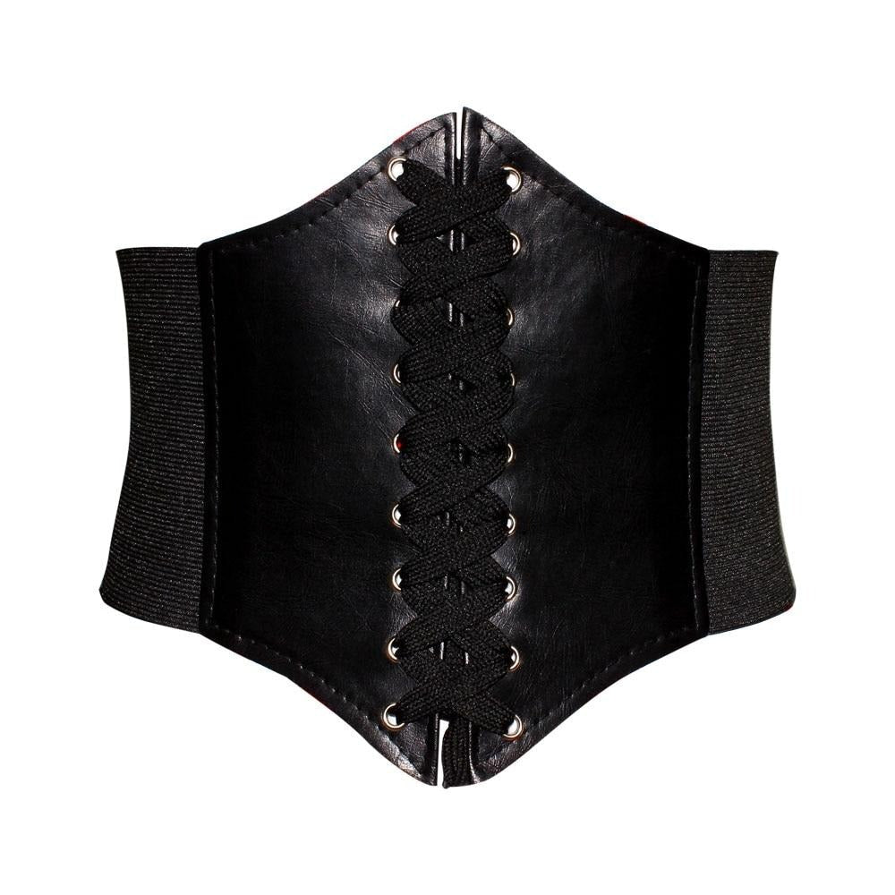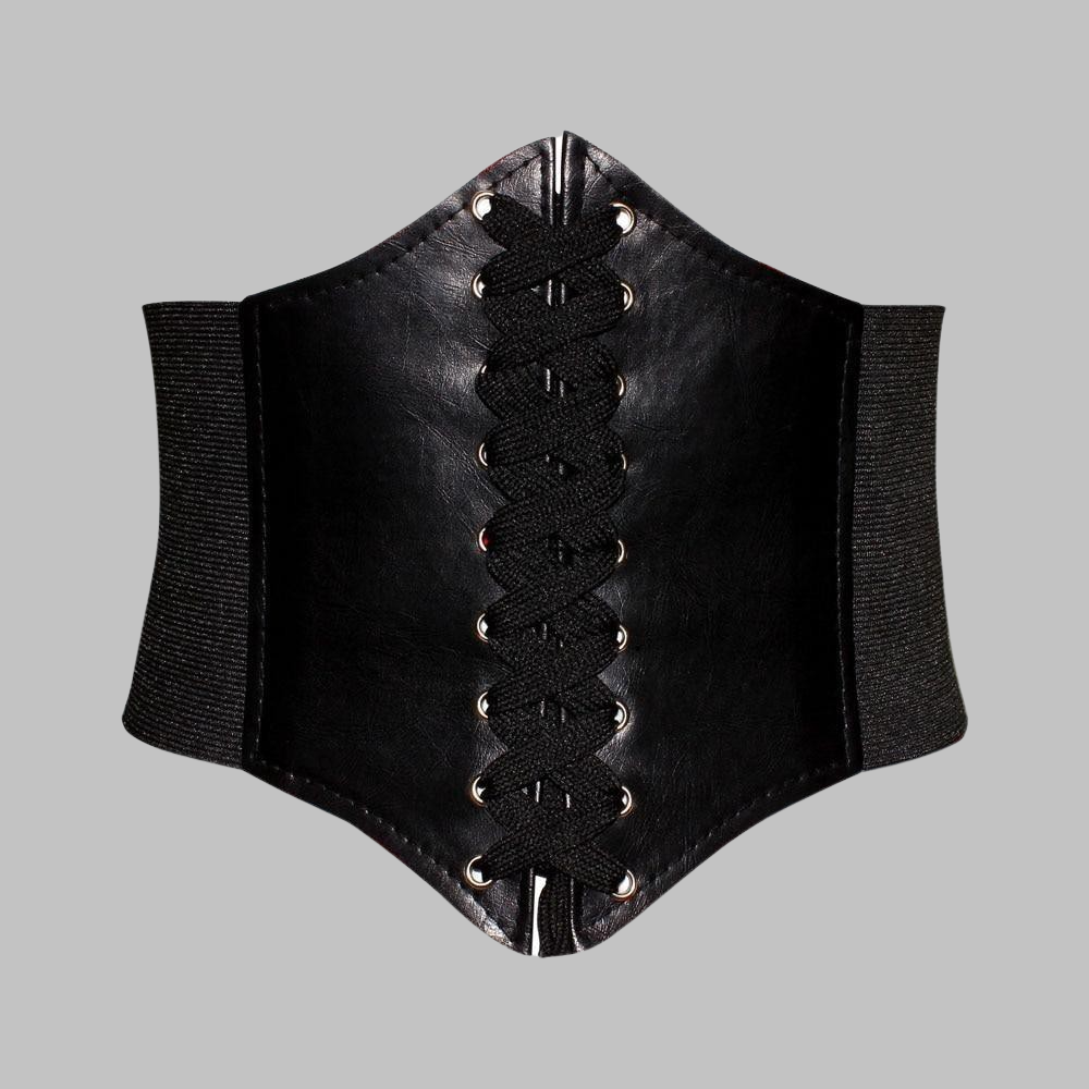 ブラック コルセットレザーウエストベルト