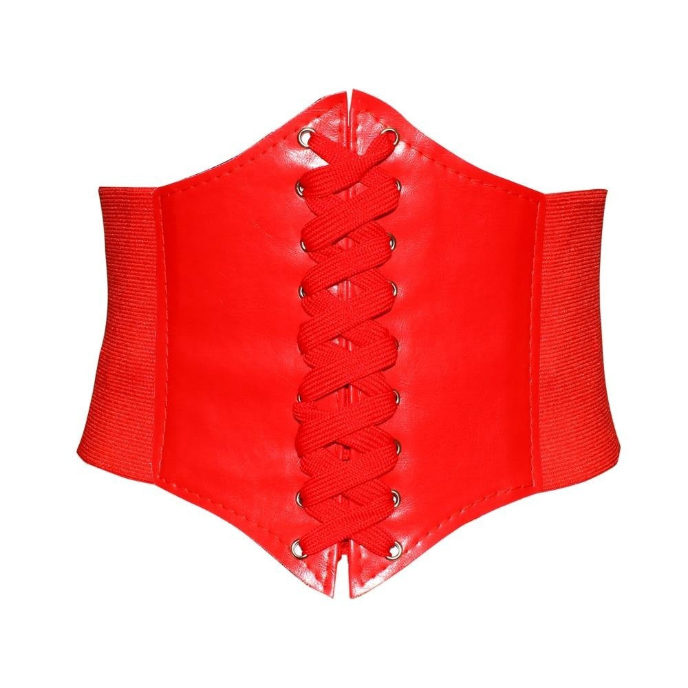 ブラック レザー コルセット ベルト レッド