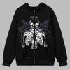 翼のあるスケルトン柄フード付きブラックメタルパーカー
