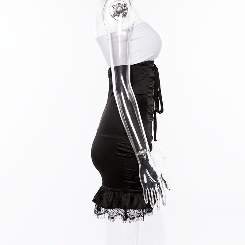 - レース付きタイトシルエットのミニスカート:よりロマンチックに