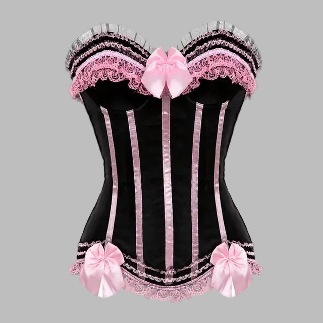 地雷系 黒×ピンク リボン&レース コルセット
