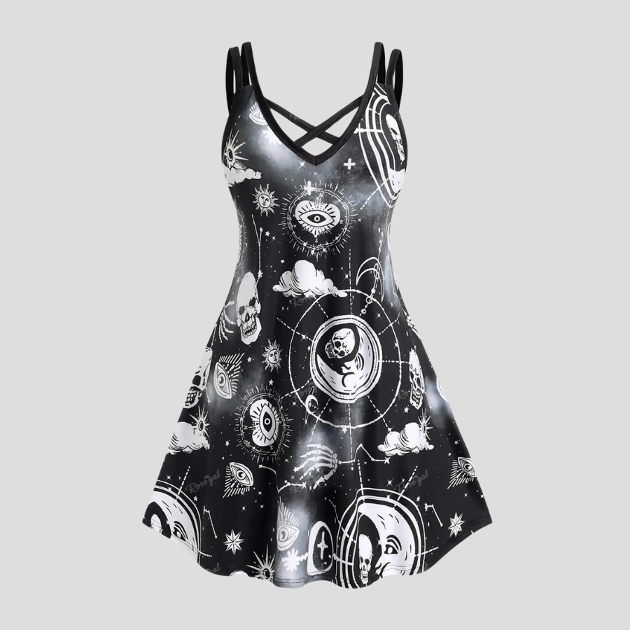 オカルトシンボルとスター柄のブラック・パンクロックワンピース