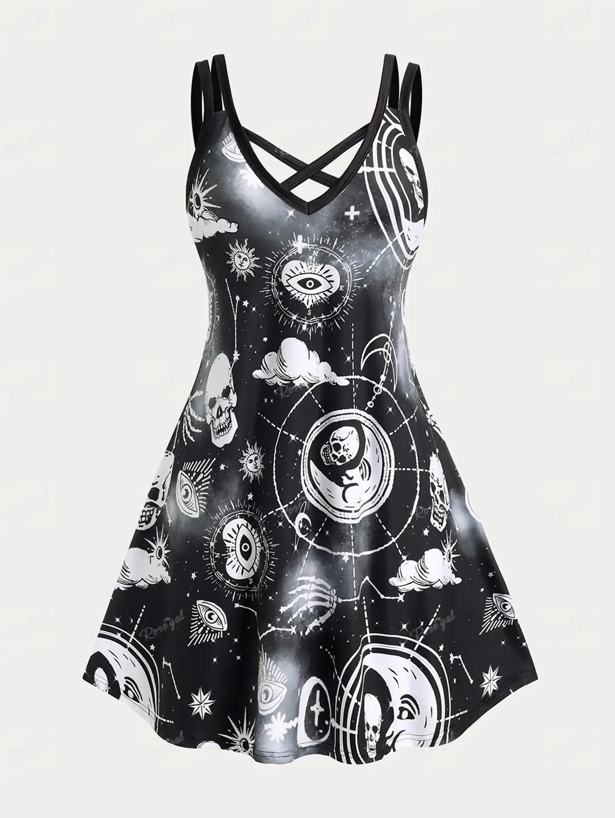 ブラック パンクロック ワンピース オカルトシンボル&スター柄 5XL