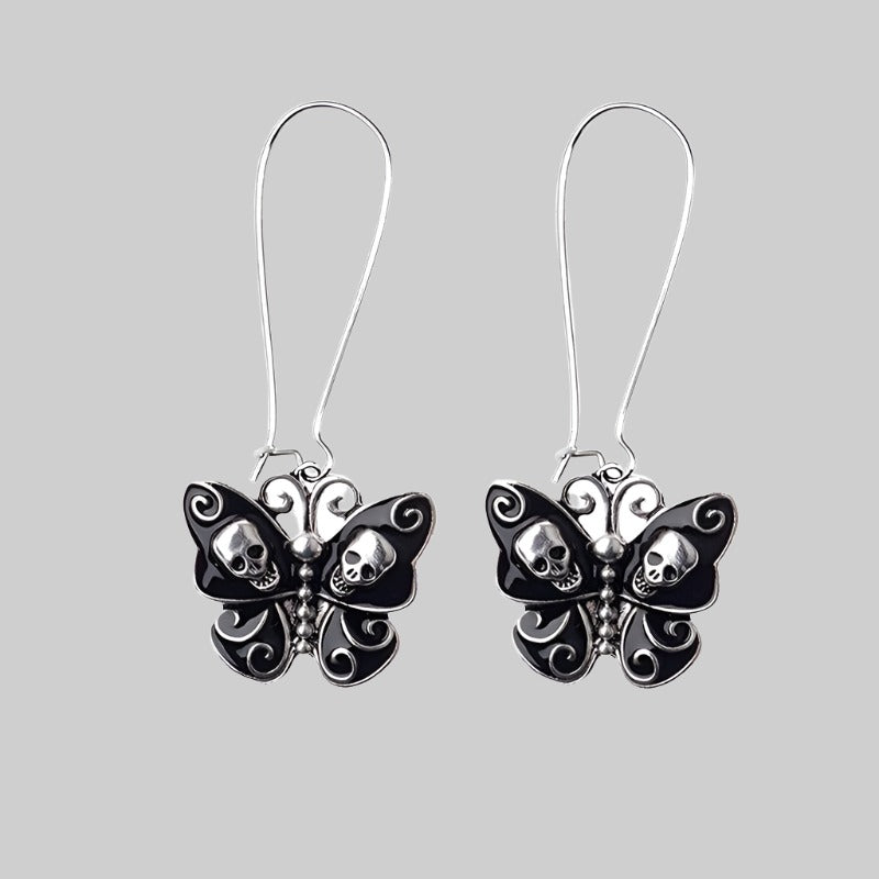- 装飾:黒い蝶の翼に刻まれたスカル模様、メタルオーナメント