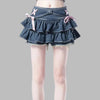 - 短い説明:フリルとピンクのリボン付きデニムスカート