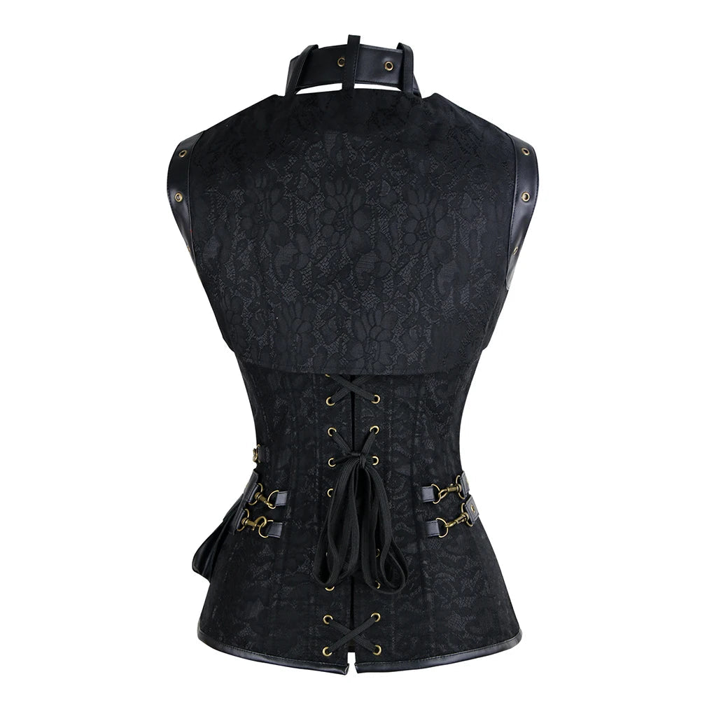 ゴシック・スチームパンク花柄レザーコード付きコルセット