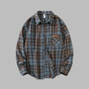 グランジ調 グレー×ブルー チェック柄 ポケット付きシャツ