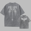 グレー ヴィンテージ メタル Tシャツ 天使の翼 グランジデザイン