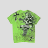 メンズ パンク Tシャツ 緑のスカル&クロス柄 グラフィック