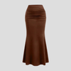ウエストギャザー入りロングブラウンマーメイドスカート