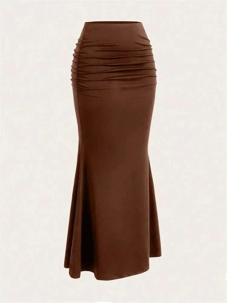 ブラウン ロング マーメイドスカート ウエストギャザー入り