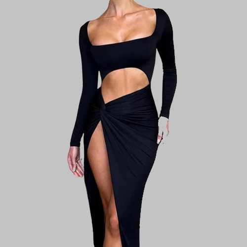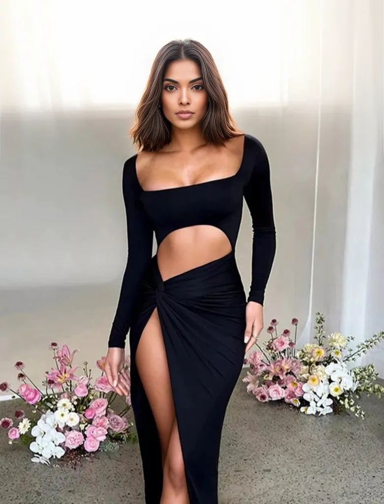 エレガントなボディラインシルエット: このワンピースのボディラインを美しく見せるシルエットが曲線を引き立て、モダンで魅惑的なフェミニンさを演出します。