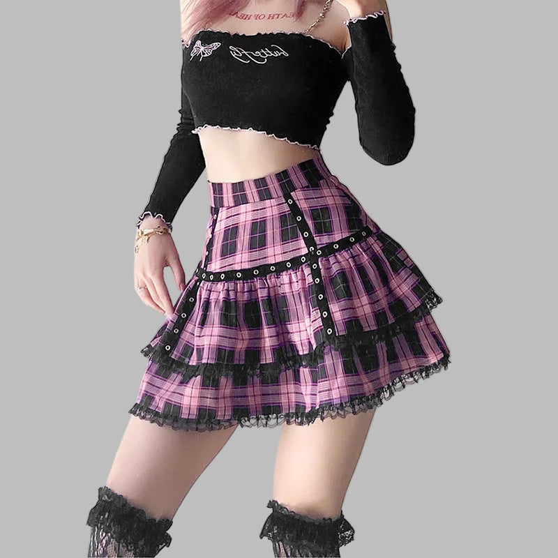 レーストリムチェック柄パンクロックグランジスカート オプションを見る