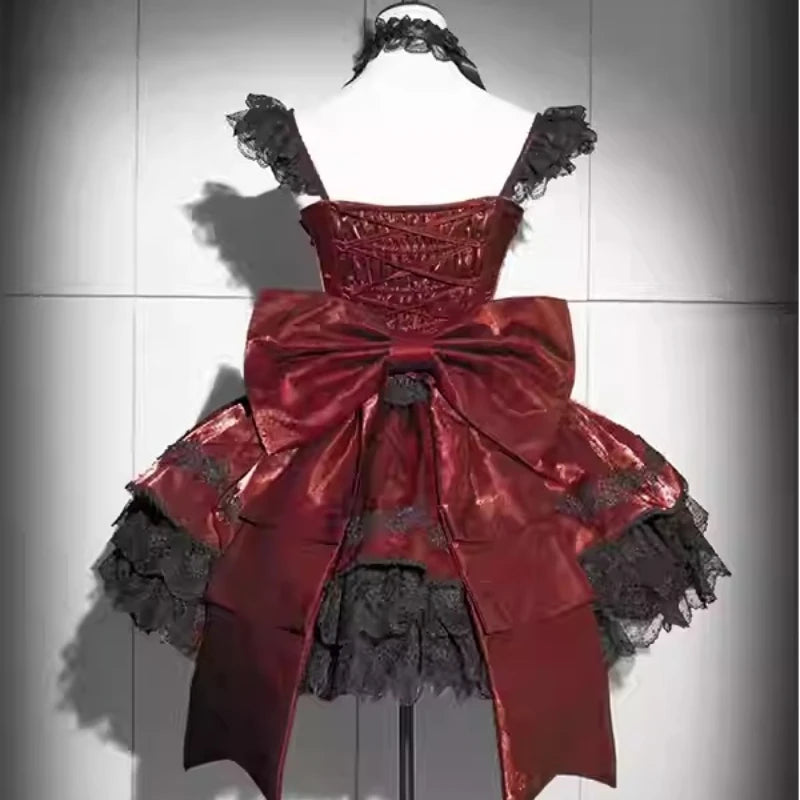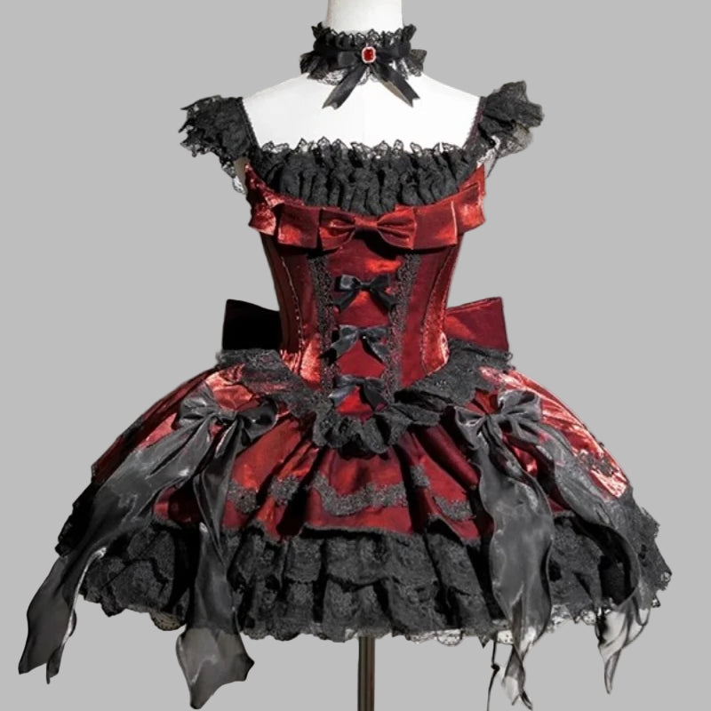 ゴシック・パンク・ロリータ 赤黒レースワンピース