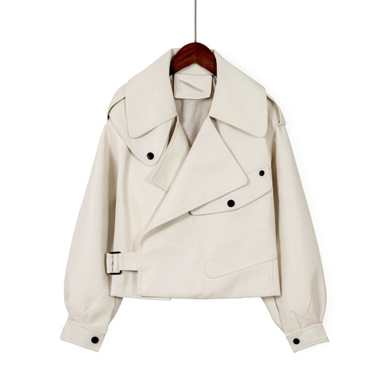 レッド本革ジャケット ベージュ