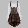 スチームパンク コルセット付きストライプブラウンワンピース レーススカートセット