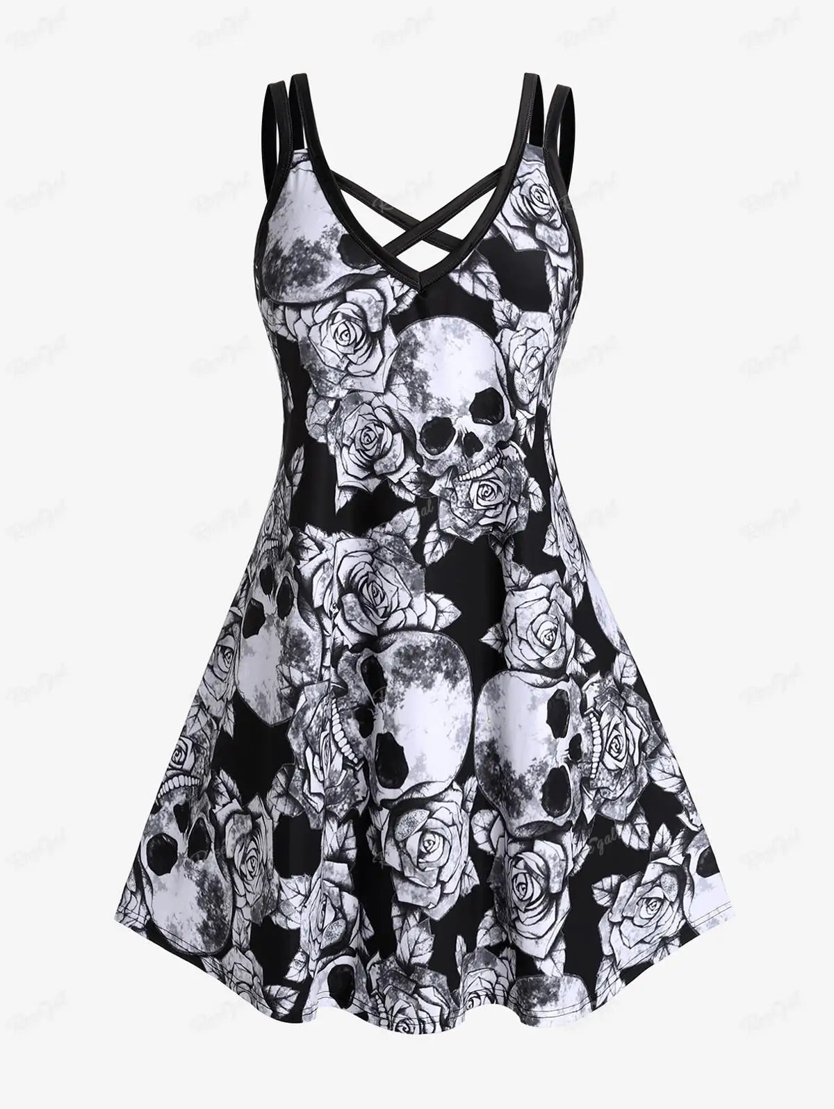 ロック調 白 スカル&ローズ柄 ワンピース メタル 5XL