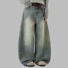 レディース グランジ ワイドグレー デニムバギーパンツ オーバーサイズ