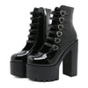 レディース 厚底 ゴシックシューズ 光沢ブラック メタルスタイル